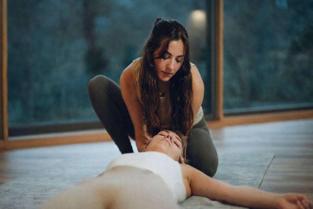 Sanft, ohne Öl, in bequemer Kleidung – am Boden auf einer warmen Matte.